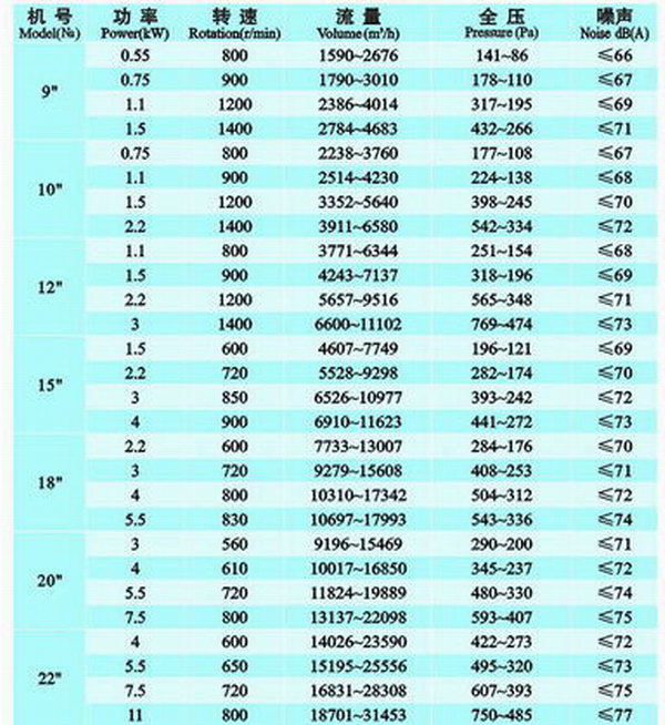 九洲空調用風機系列